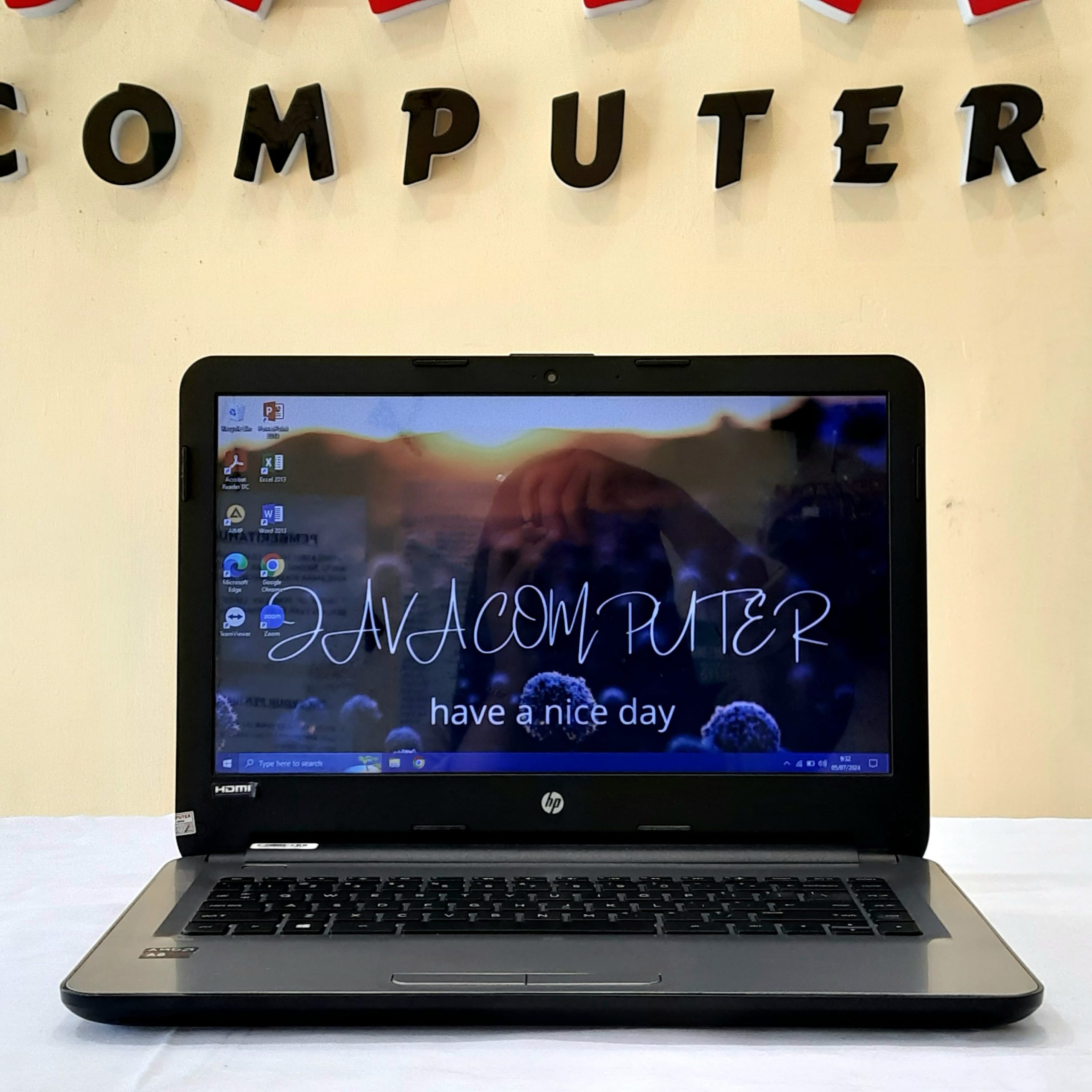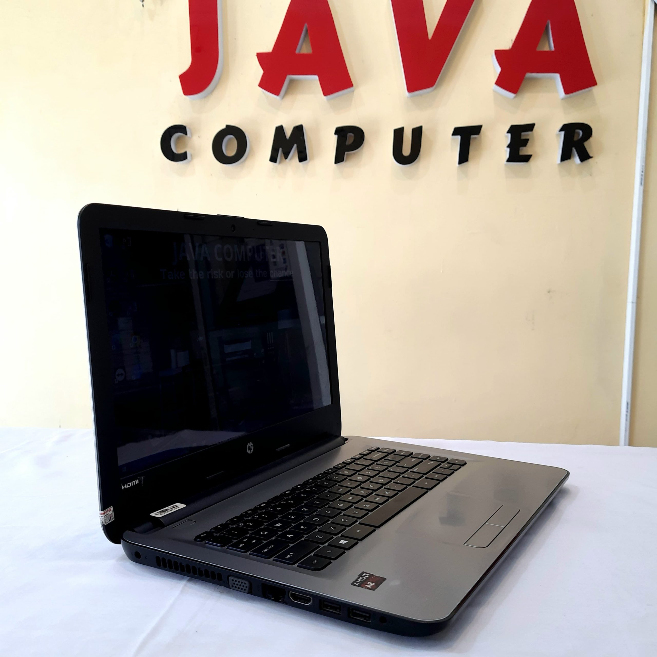 Laptop dengan Processor AMD A8 – 7410 RAM 4GB DDR3, dan penyimpanan SSD 128GB + HDD 500GB. Didukung layar 14 inch beresolusi HD